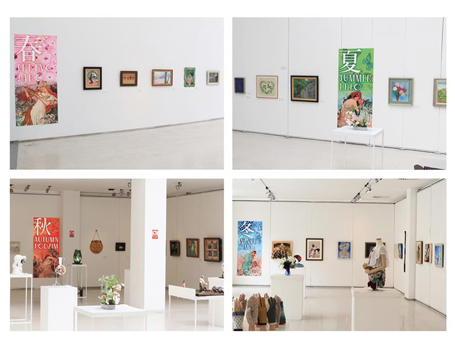 本展は、ミュシャの代表作である《四季》をテーマに、「THE FOUR SEASONS(四季)」と題し、日本のアーティストたちによる、日本画、洋画、彫塑・陶工芸、建築、写真、書道といった各ジャンル総計130点の作品を、《四季》の春夏秋冬に合わせて展示されました。連日多くの方にご来場いただくことが叶いました。