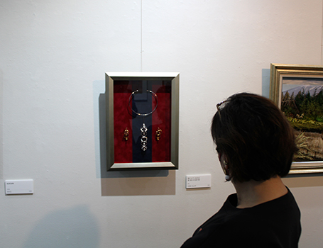 出展作品を鑑賞する審査員の枝澤 佳世氏